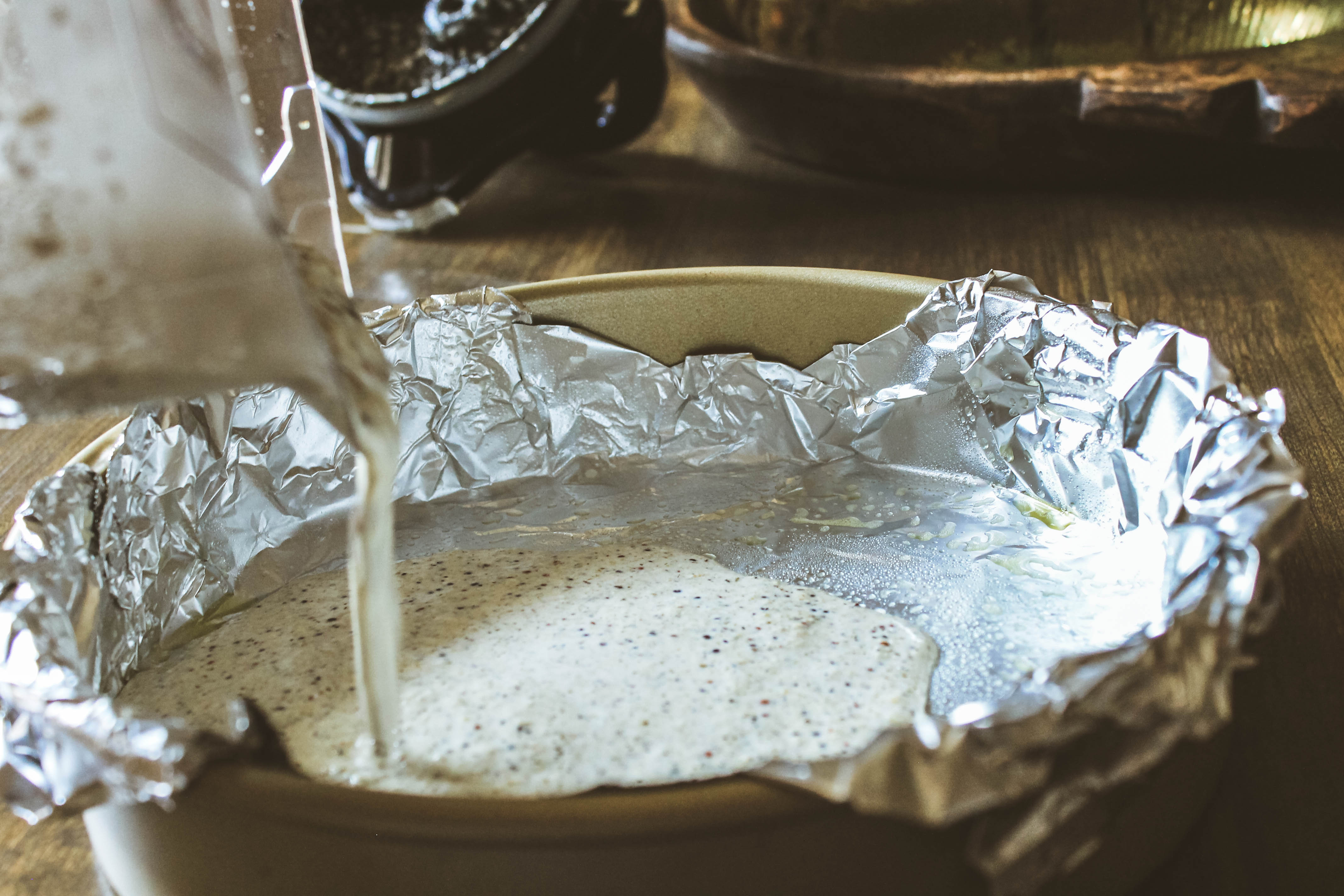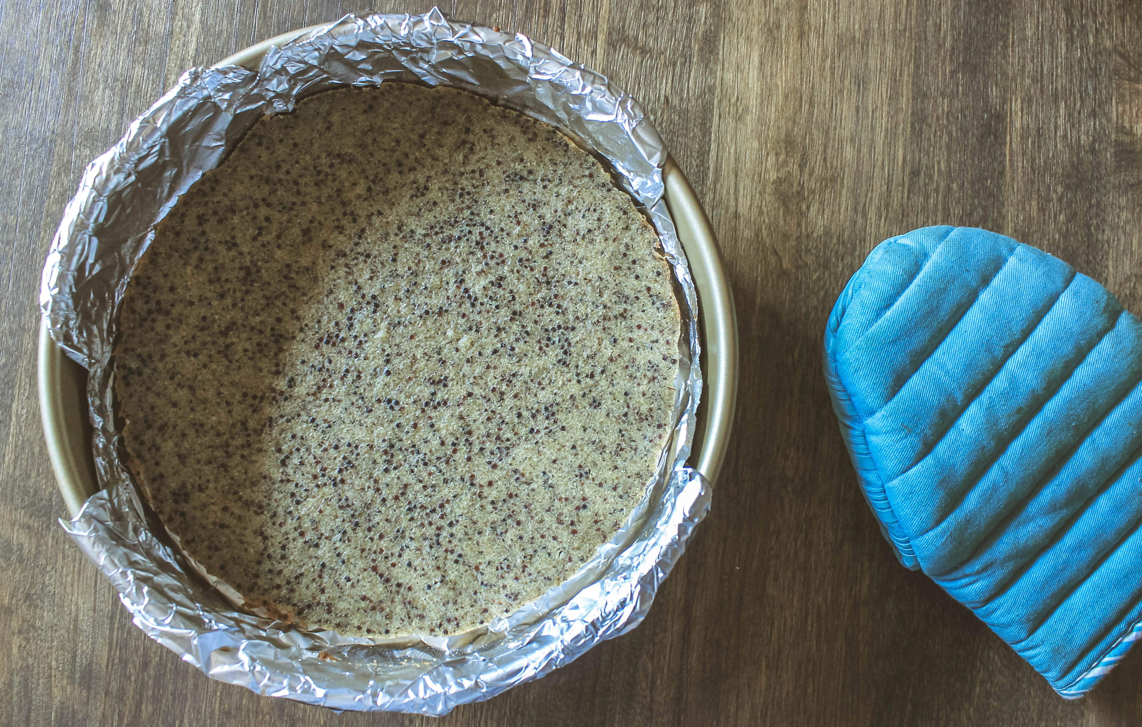 - • Pre-heat oven to 425 degrees F. Line a 9 inch round cake pan with foil and spray with non-stick spray (I prefer olive or coconut oil spray)